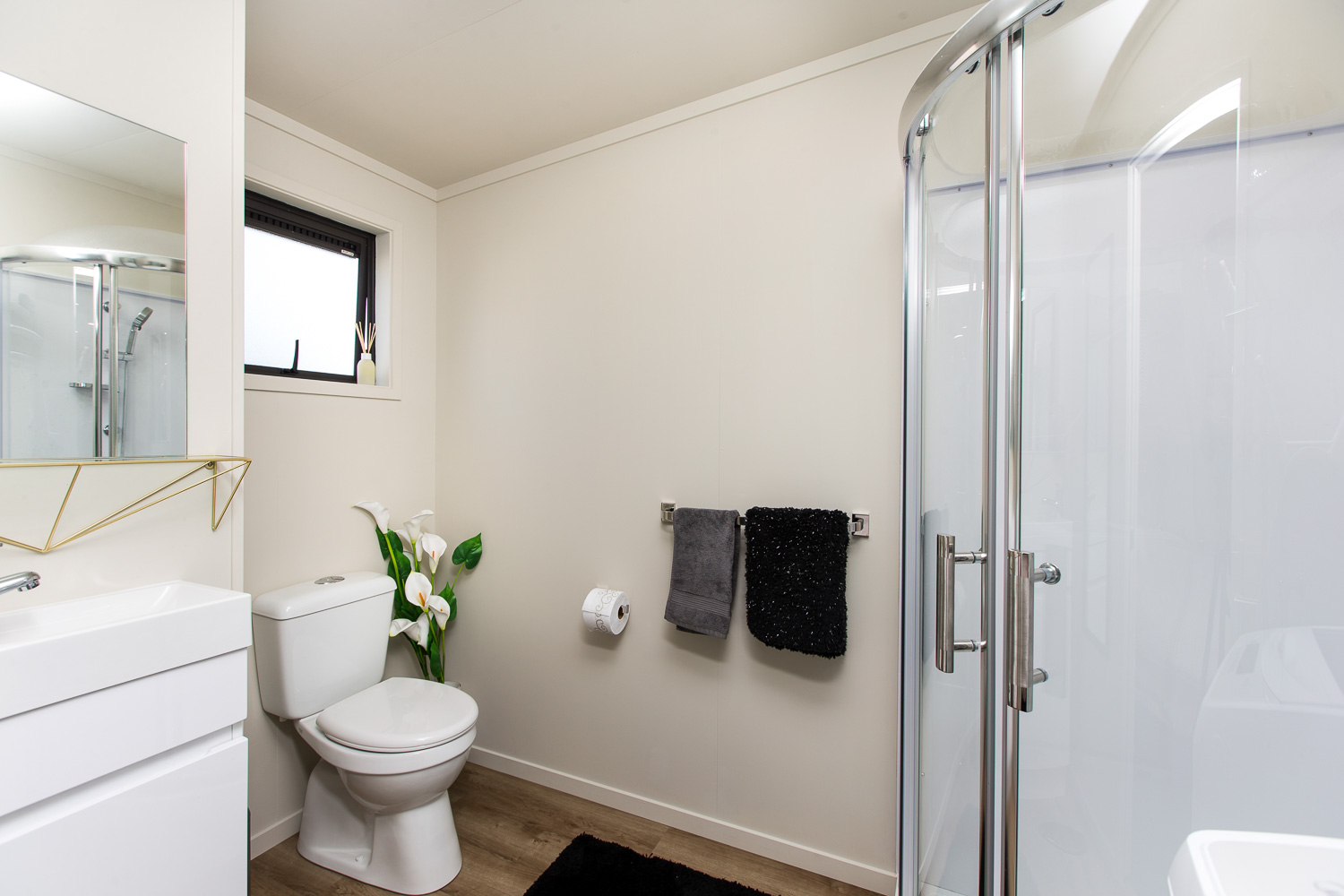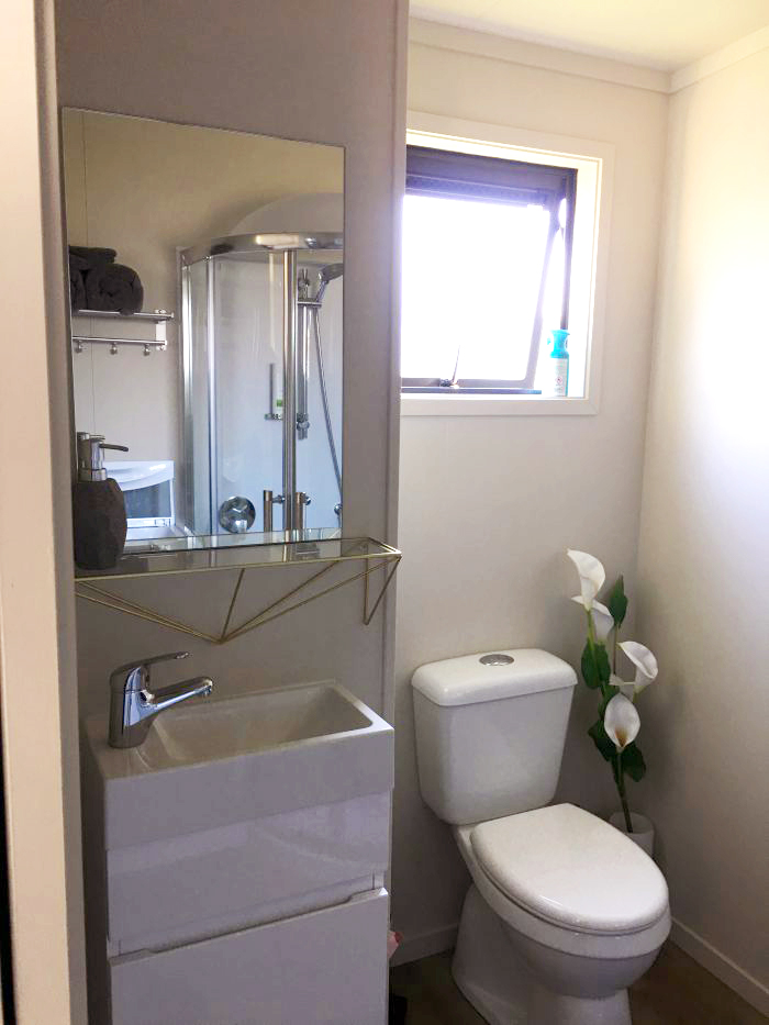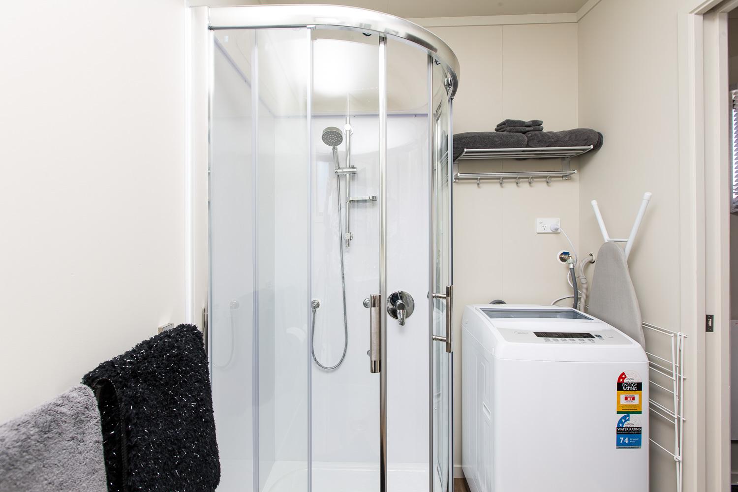 Our one bedroom self-contained cabins have a ensuite bathroom (with room for a washing machine), open plan kitchen/lounge area and a seperate bedroom. Ideal for farm workers, guests, or private accommodation.
